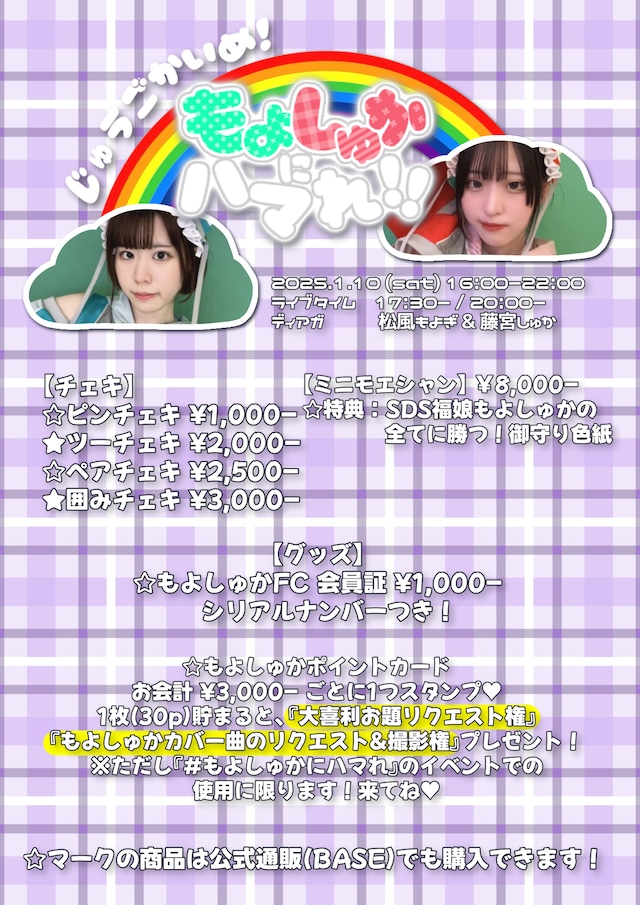 もよしゅかの当日ペアチェキです。 ※日付・サイン入り ※宛名をご希望の方は備考欄へご記載をお願いいたします。 ご用意ができ次第、順次発送させていただきます。